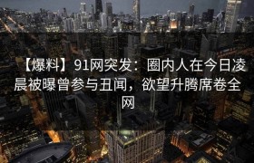 今日凌晨,91网一则爆料信息的突然曝光,彻底打破了网络的平静。内容直指某位圈内知名人士,称其曾参与一...