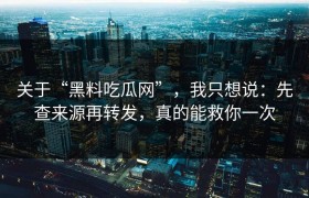 关于“黑料吃瓜网”,我只想说:先查来源再转发,真的能救你一次 在信息爆炸的时代,热闹的“黑料”和一波...