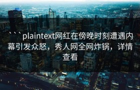 ```plaintext网红在傍晚时刻遭遇内幕引发众怒,秀人网全网炸锅,详情查看