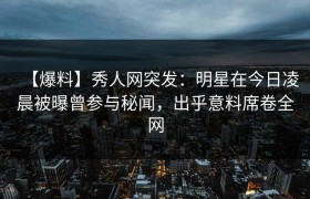 揭秘爆料源头:秀人网突然爆出震撼内幕,究竟发生了什么? 当今娱乐圈风云变幻,明星的每一个动作都牵动着...