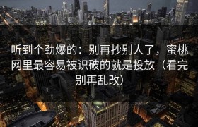 听到个劲爆的:别再抄别人了,蜜桃网里最容易被识破的就是投放(看完别再乱改)