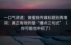 一口气讲透:做蜜桃传媒标题别再堆词:真正有效的是“爆点三句式”(你可能也中招了) 写标题的常见错误不...