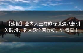 【速报】业内人士在昨晚遭遇八卦引发联想,秀人网全网炸锅,详情直击