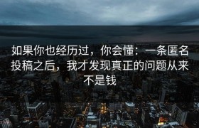 如果你也经历过,你会懂:一条匿名投稿之后,我才发现真正的问题从来不是钱 引子 那是一个普通的周一,我...