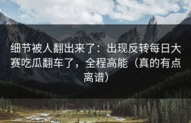 细节被人翻出来了:出现反转每日大赛吃瓜翻车了,全程高能(真的有点离谱)